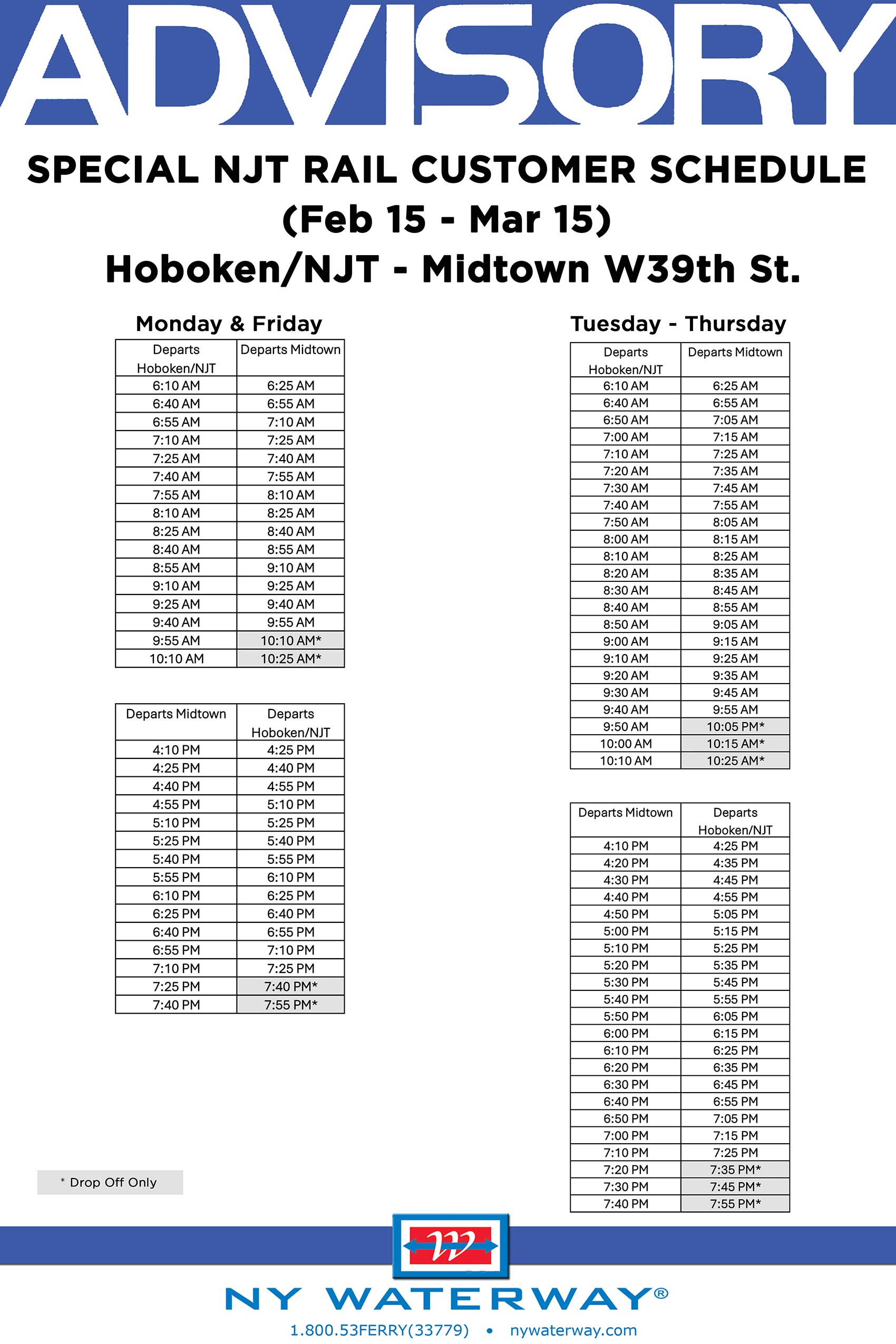 Special Hoboken NJT - Midtown Ferry Schedule for NJT Rail Ticket Customers