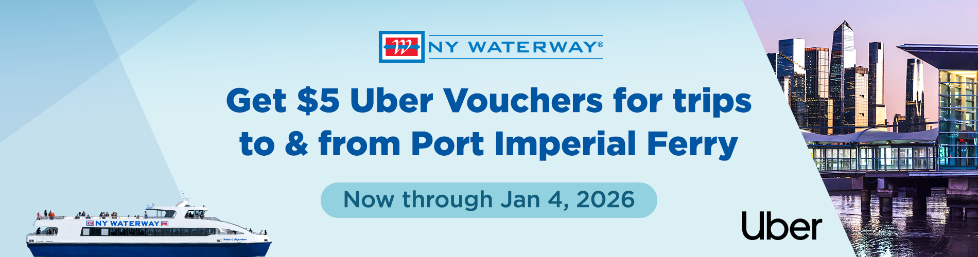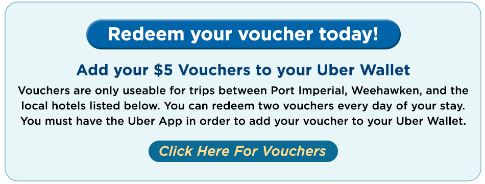 $5 Uber Voucher from select NJ hotels to Port Imperial, Weehawken, and another