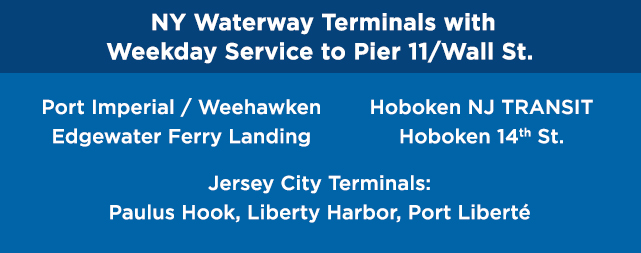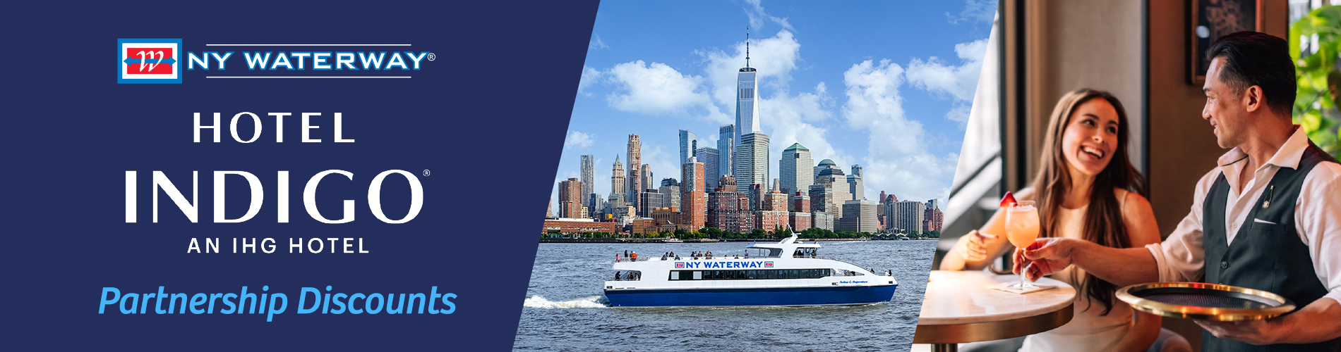 No hassles with downtown parking, traffic, subways or cabs. Take a NY Waterway Ferry to Pier 11/Wall St. and you are in the middle of the Financial District, less than a block from the Ferry to IHG's Hotel Indigo*