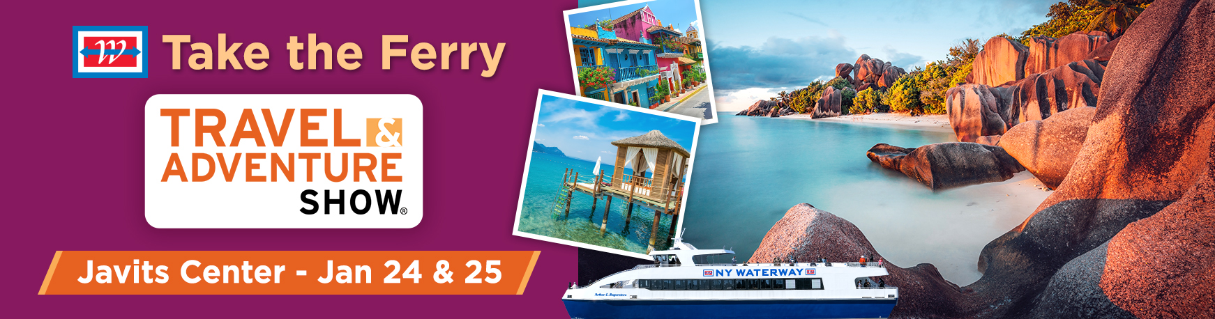 NY Waterway Ferry is the fastest and easiest way to get to the New York Travel & Adventure Show at the Javits.